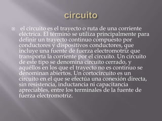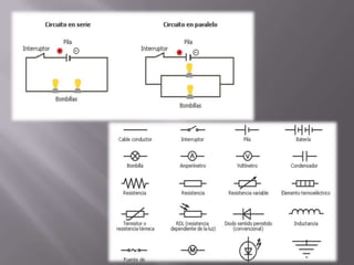 Un circuito eléctrico es la ruta continua de una corriente eléctrica a través de conductores y dispositivos que incluye una fuente de energía. Un mecanismo es un conjunto de sólidos móviles unidos por uniones que transmiten movimiento según principios de álgebra lineal y física para analizar los movimientos relativos de rotación y traslación de sus elementos. La mayoría de mecanismos pueden analizarse en dos dimensiones pero algunos requieren un análisis tridimensional debido a sus movimientos complejos