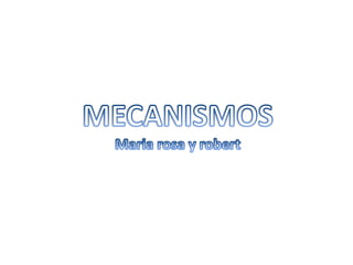 Este documento describe diferentes mecanismos mecánicos, incluyendo la biela-manivela que convierte movimiento circular en lineal, piñón-cremallera que convierte circular a lineal, tuerca-husillo que convierte rotación a fuerza lineal, leva que convierte circular a rectilíneo, excentrica formado por disco con eje no en el centro, frenos que detienen movimiento convirtiendo energía cinética a calor, volante de inercia que almacena energía cinética, juntas cardan que unen ejes no