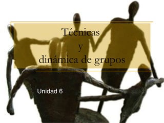 El documento define conceptos clave de dinámica de grupos y técnicas grupales. Explica que la dinámica de grupos estudia los procesos grupales y las leyes que rigen la conducta de los grupos. Las técnicas grupales son medios para organizar la actividad grupal y lograr objetivos grupales de manera práctica y vivencial. El documento también describe diferentes tipos de técnicas grupales para la presentación, el conocimiento mutuo, la comunicación, la cooperación, el análisis, la discusión y la toma de decision