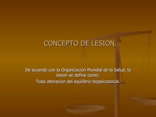 Este documento trata sobre traumatología forense y clasifica los diferentes tipos de lesiones según el agente causante (físico, químico, biológico o mecánico), describiendo las características de cada lesión. También cubre temas como diagnóstico diferencial entre suicidio, homicidio y accidente, así como accidentes de tránsito.
