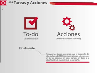 El documento presenta información sobre el uso de medios online y redes sociales en el plan de medios. Se explica que actualmente en Honduras los medios online solo alcanzan al 10% de la población y son usados por un porcentaje aún menor de empresas. También se menciona que en San Pedro Sula los medios online están ganando terreno en el plan de medios pero su uso no ha evolucionado al mismo ritmo que las redes sociales.