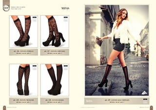Este documento presenta una lista de artículos de medias y camisetas para la venta. Incluye más de 50 artículos de medias de nailon con diferentes diseños y colores, así como camisetas y poleras en varios colores y tallas. También incluye medias compresivas y de compresión graduada, así como ropa interior modeladora para reducir la cintura y levantar la cola.