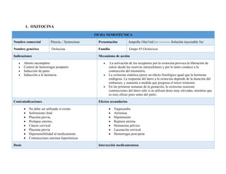 Este documento presenta fichas nemotécnicas de 6 medicamentos utilizados en atención de enfermería materno infantil: 1) Oxitocina, utilizada para control de hemorragia postparto, inducción de parto e inducción a la lactancia. 2) Sulfato de magnesio, usado para prevenir convulsiones en preeclampsia y eclampsia. 3) Hidralazina, vasodilatador utilizado para tratar hipertensión arterial en preeclampsia. 4) Gluconato de calcio, electrolito usado para tratar hip