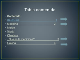 La Universidad de Ciencias Aplicadas y Ambientales (U.D.C.A) ofrece un programa de Medicina de 12 semestres que conduce al título de Médico Cirujano. La Facultad de Medicina tiene como misión formar profesionales en medicina con una perspectiva humanística, investigativa y social, y como visión convertirse en líder en formación de médicos con énfasis en atención primaria en salud en el país.