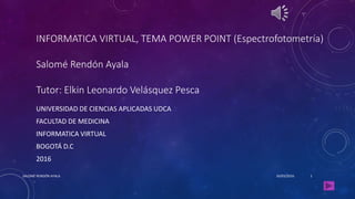 La espectrofotometría es un método de análisis óptico que mide la energía radiante absorbida o transmitida por una solución en función de la longitud de onda. Su principio se basa en la absorción de radiación electromagnética, y su eficacia se describe mediante la ley de Lambert-Beer, que relaciona la absorbancia con la concentración y la longitud del trayecto de la luz. Este método tiene aplicaciones en diferentes áreas, incluyendo la determinación de concentraciones y la identificación de estructuras moleculares.