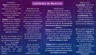 Este documento presenta información sobre diferentes conceptos de medición como velocidad, aceleración, peso, fuerza, torque, masa y tiempo. Explica que la velocidad mide la distancia recorrida por unidad de tiempo, y la aceleración mide el cambio de velocidad entre dos momentos. También describe el funcionamiento de un manómetro de tubo de Bourdon y diferentes unidades de medición como el newton, kilogramo y segundo. Incluye ejemplos para ilustrar los conceptos.