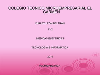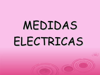 El documento describe diferentes tipos de instrumentos de medición eléctrica como el voltímetro, amperímetro y ohmímetro. Explica que los voltímetros miden la diferencia de potencial entre dos puntos sin romper el circuito, mientras que los amperímetros y ohmímetros requieren conectarse en serie. También define unidades eléctricas como el voltio, amperio y ohmio, y explica la Ley de Ohm sobre la relación entre tensión, intensidad y resistencia.