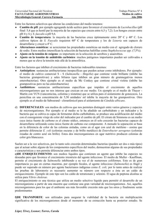 Este documento describe los diferentes tipos de medios de cultivo utilizados para el crecimiento de