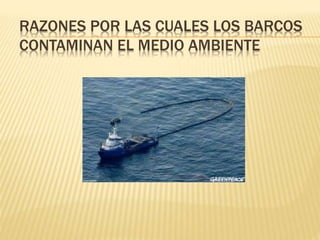 Los barcos, aviones y trenes contaminan el medio ambiente de diferentes maneras. Los barcos emiten más dióxido sulfúrico y óxido de nitrógeno que todos los automóviles y camiones juntos, y utilizan combustible barato que produce escapes nocivos. Los aviones contribuyen al 15% de las emisiones de carbono mundiales y sus estelas crean un efecto invernadero. Los trenes también contaminan dependiendo del tipo de energía que utilicen, aunque los de alta velocidad son más eficientes.