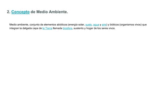 El documento resume los principales problemas medioambientales causados por la actividad humana, incluyendo el aumento de dióxido de carbono y gases de efecto invernadero, la acidificación por lluvia ácida, la destrucción de la capa de ozono, la contaminación por pesticidas y sustancias tóxicas, la radiación nuclear, y la pérdida de tierras vírgenes debido a la deforestación. Explica cómo estas actividades están alterando el medio ambiente de forma negativa y amenazando la vida en la Tierra.