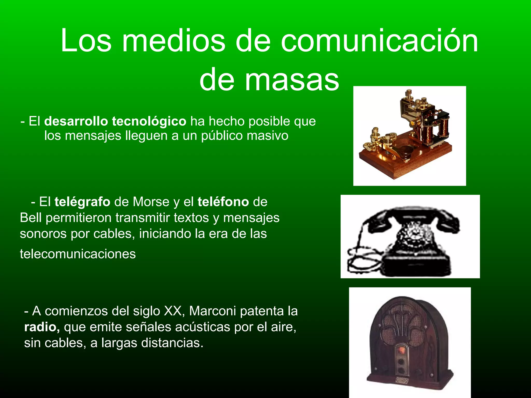El documento describe la evolución de los principales medios de comunicación masiva y sus características. Comenzó con el telégrafo y el teléfono permitiendo la transmisión de mensajes a distancia, luego la radio transmitiendo señales de audio sin cables. La televisión, prensa y radio existen en múltiples formatos públicos y privados, nacionales o locales. Todos los medios cumplen funciones de informar, entretener y fomentar el consumo, además de proporcionar contenido cultural e informativo a grandes audiencias