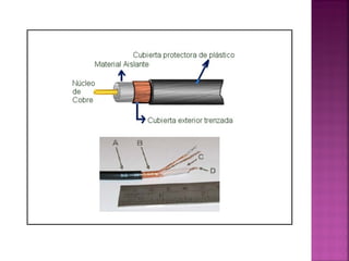 Este documento describe diferentes medios de transmisión guiados como el par trenzado, el cable coaxial y la fibra óptica. El par trenzado puede ser sin blindaje o con blindaje, y se clasifica en diferentes categorías según su ancho de banda y velocidad de transmisión. El cable coaxial es menos susceptible a interferencias que el par trenzado. La fibra óptica ofrece las mayores velocidades pero también es el medio más costoso.