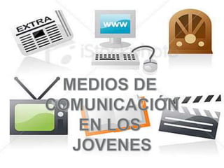 El documento analiza los principales medios de comunicación utilizados por los jóvenes, incluyendo la televisión, Internet y celulares. Señala que la televisión expone a los adolescentes a contenido sexual que puede distorsionar su percepción de la realidad. También describe cómo los jóvenes usan Internet para comprar, comunicarse y entretenerse, y cómo la radio permite desarrollar la imaginación. Finalmente, indica que el celular es el medio más utilizado por los jóvenes para comunicarse de manera ubicua.