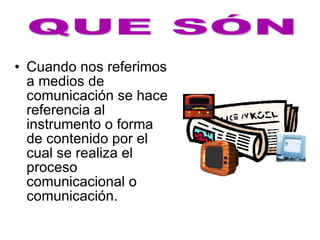 El documento describe los principales medios de comunicación, incluyendo la prensa, la televisión, la radio, el teléfono y la computadora. Explica que cada medio permite la transmisión de información de diferentes formas como sonido, imágenes u otros datos mediante ondas electromagnéticas o redes especializadas. También incluye una breve historia del desarrollo e inventores clave de cada medio de comunicación.