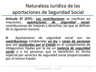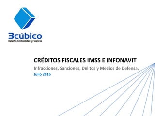 El documento aborda la naturaleza y obligaciones de las aportaciones al IMSS e Infonavit, destacando las infracciones y sanciones correspondientes a los incumplimientos de los patrones. Se especifican las contribuciones, derechos y responsabilidades en el ámbito de la seguridad social en México, incluyendo la definición del seguro social y las implicaciones legales. Además, se detallan las consecuencias y créditos fiscales relacionados con el incumplimiento de dichas obligaciones.
