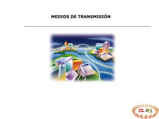 El documento describe diferentes medios de transmisión para redes, incluyendo medios guiados como cable coaxial, par trenzado y fibra óptica, así como medios no guiados como ondas de radio, microondas y satélite. Cada medio tiene ventajas y desventajas en términos de ancho de banda, distancia máxima de transmisión, interferencia y costo. Al seleccionar un medio, es importante considerar factores como el tráfico de red, seguridad, distancia y presupuesto.