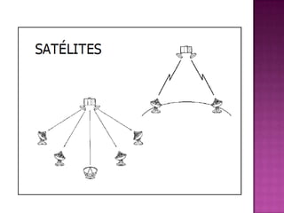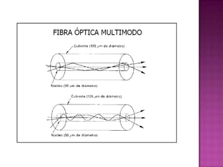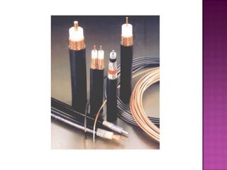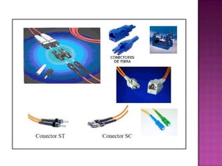 Este documento describe los diferentes tipos de medios de transmisión de datos, incluyendo medios guiados como cable par trenzado, coaxial y fibra óptica, y medios no guiados como radio, microondas y satélite. Explica brevemente las características y usos de cada uno de estos medios.