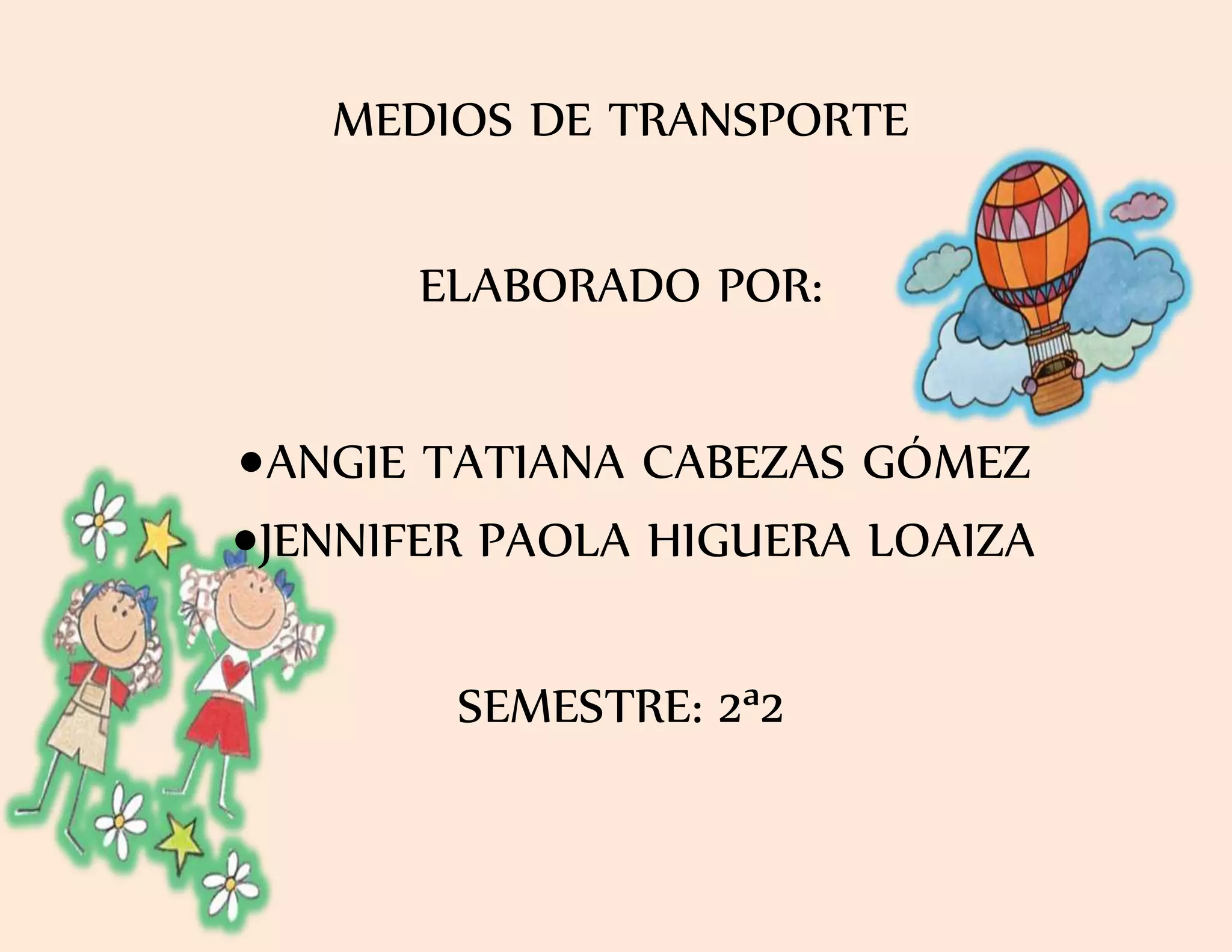 Los medios de transporte son importantes para la movilidad de las personas y bienes. Este documento fue elaborado por Angie Tatiana Cabezas Gómez y Jennifer Paola Higueras Loaiza, estudiantes del segundo semestre, como parte de sus estudios.