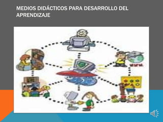 El documento describe los diferentes tipos de medios didácticos y tecnologías educativas que pueden usarse para crear ambientes de aprendizaje, incluyendo recursos pre-tecnológicos, audiovisuales, informáticos y de tecnologías de información y comunicación como Internet. Explica servicios de Internet como la World Wide Web, correo electrónico, foros de discusión y chats, así como sus usos en educación. También advierte sobre riesgos de usar Internet sin seguridad y ofrece recomendaciones para padres, estudiantes y doc