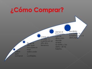 El documento describe diferentes métodos de pago para compras en línea, incluyendo contra reembolso, giro postal o telegráfico, depósito en cuenta corriente, Western Union, PayPal y tarjetas de crédito. También ofrece consejos sobre cómo comprar de forma segura en Internet, como verificar la seguridad del sitio web, leer las políticas de privacidad, proporcionar solo datos personales mínimos y guardar registros de la compra.