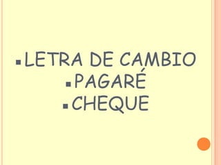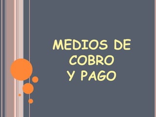 Este documento describe diferentes medios de cobro y pago como letras de cambio, pagarés y cheques. Explica que las letras de cambio son documentos que ordenan un pago en una fecha y lugar determinados, y pueden ser endosadas para transmitirse como medio de pago. Los pagarés funcionan de manera similar pero manifiestan una promesa incondicional de pago. Los cheques permiten disponer de fondos de una cuenta corriente bancaria.