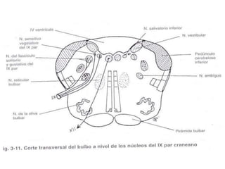 El documento contiene información sobre la anatomía humana y la odontología. Describe varias partes de la médula espinal y el bulbo raquídeo, incluyendo la médula espinal, las raíces nerviosas, los núcleos y los nervios craneales. También incluye una cita de Rocky Balboa enfatizando la importancia de creer en uno mismo.