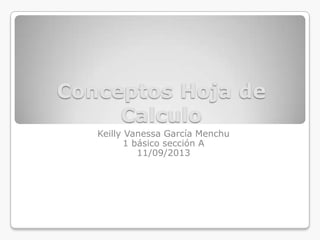 Este documento define conceptos básicos de hoja de cálculo como celdas, fórmulas, estadísticas, macros, funciones, hojas de cálculo, filtrar, bases de datos e incluye una breve reseña histórica sobre el desarrollo de las hojas de cálculo computarizadas en 1961.