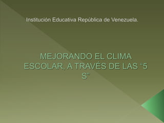La metodología de las "5 S" propone cinco principios (clasificación, orden, limpieza, normalización y mantener la disciplina) para mejorar la calidad educativa a través de una mejor gestión del espacio escolar. Estos principios buscan eliminar lo innecesario, organizar el espacio de manera eficiente, mejorar los niveles de limpieza, prevenir la suciedad y el desorden, y fomentar el continuo mejoramiento. La comunidad educativa se compromete a aplicar esta metodología para garantizar su permanencia en el tiempo.
