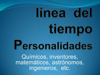 El documento proporciona información sobre varias personalidades históricas importantes en las ciencias como Arquímedes, Aristóteles, Isaac Newton, Empédocles, Robert Boyle, Robert Brown, James Joule, Blaise Pascal y Amedeo Avogadro. Describe sus principales descubrimientos e investigaciones en áreas como la física, la química, las matemáticas y la biología que ayudaron a sentar las bases de estas disciplinas.