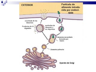 El documento describe la estructura y función de la membrana celular. La membrana está compuesta principalmente por lípidos y proteínas que forman una estructura de mosaico fluido. Los lípidos forman una bicapa que permite el paso de pequeñas moléculas por difusión, mientras que las proteínas transportan otras sustancias y cumplen funciones específicas. El transporte a través de la membrana puede ser pasivo siguiendo gradientes de concentración, o activo usando energía.