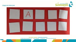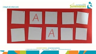 Este documento propone una actividad de memoria visual para niños utilizando cartones con letras. Sugiere primero dibujar vocales por duplicado en cartones y girarlos, luego jugar a encontrar parejas de vocales y después incluir consonantes para formar un juego de memoria con letras. Finalmente pide a los niños que hagan su propio juego de memoria y envíen fotos.