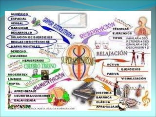 El documento resume los diferentes tipos de memoria. Se divide la memoria en a corto y largo plazo. La memoria a corto plazo dura unos segundos y puede retener 7 elementos. La memoria a largo plazo se divide en declarativa (episódica y semántica) y no declarativa (procedimental). La memoria episódica almacena eventos vividos y la semántica almacena significados. La memoria procedimental almacena habilidades motoras y cognitivas de forma implícita.
