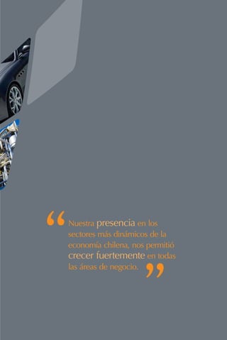 1) Sigdo Koppers experimentó un fuerte crecimiento en todas sus áreas de negocio en 2010 debido a la recuperación de la economía chilena y los altos precios de las materias primas.