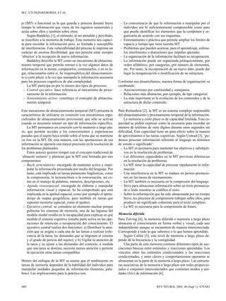 Este documento discute las dificultades del aprendizaje relacionadas con la memoria de trabajo. Explica que la memoria de trabajo es fundamental para el análisis, síntesis y retención de información necesaria para procesos mentales, y que el córtex prefrontal dorsolateral juega un papel crucial. También señala que los trastornos que afectan los mecanismos fundamentales de la memoria de trabajo darán lugar a disfunciones que influirán en muchos procesos de aprendizaje académico formal como la atención,