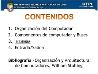 El documento describe los diferentes tipos de memoria en una jerarquía, desde la memoria principal semiconductor hasta la memoria secundaria magnética y óptica. Explica que la memoria caché se usa para mejorar el rendimiento al almacenar datos recientemente accedidos de la memoria principal de forma más rápida. Detalla los elementos de diseño de la caché como el tamaño de bloque, algoritmos de sustitución y correspondencia directa o asociativa.