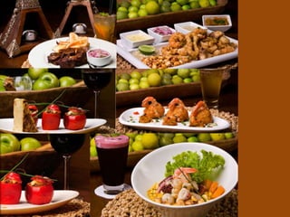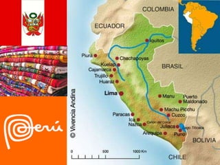 El documento describe aspectos de la cultura peruana como la religión, la alfarería y los textiles precolombinos. También habla de la diversa gastronomía peruana con más de 2000 sopas y 250 postres, y presenta al Gallito de las Rocas como ave nacional. Además, resume las características físicas de esta ave y sus rituales de cortejo. Por último, presenta una lista de platos típicos peruanos y describe brevemente al restaurante Pozo Santo y su cocina basada en recetas tradicionales