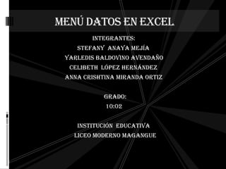 El documento explica las diferentes herramientas de datos en Excel como menú datos, filtros, autofiltro, filtro avanzado y esquema, las cuales permiten ordenar, buscar y agrupar datos de manera rápida y fácil para facilitar el análisis de información.