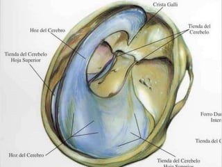 Las meninges están compuestas por tres capas de tejido conectivo que cubren y protegen el sistema nervioso central: la duramadre, la aracnides y la piamadre. La duramadre es la capa más externa, la aracnides se encuentra en el medio, y la piamadre es la capa más interna en contacto directo con el tejido cerebral y medular. Juntas, estas tres capas protegen los vasos sanguíneos y contienen el líquido cefalorraquídeo dentro del cráneo y la