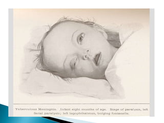 Este documento resume la epidemiología, etiología, patogenia, manifestaciones clínicas, diagnóstico y tratamiento de la meningitis bacteriana aguda. La meningitis es una enfermedad con alta morbilidad y mortalidad que se presenta principalmente en lactantes y niños pequeños. Los patógenos más comunes son neumococo, meningococo e H. influenzae. El cuadro clínico incluye fiebre, cefalea, rigidez de nuca y alteraciones del estado de conciencia. El diagnóstico se basa en