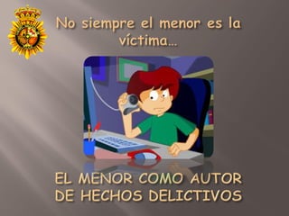 El documento habla sobre los nuevos delitos relacionados con las tecnologías de la información y la comunicación cometidos contra menores. Describe las redes sociales y formas de comunicación más usadas por los menores y explica delitos como la revelación de secretos, amenazas, tratos degradantes, corrupción de menores y apología del racismo que pueden cometerse a través de estas tecnologías. También menciona el acoso cibernético y la necesidad de proteger la privacidad e intimidad de los menores online.
