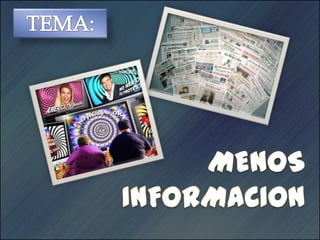Este documento discute los desafíos asociados con la información en la era de la televisión. Argumenta que la televisión proporciona menos información de calidad que otros medios debido a su enfoque en mostrar imágenes atractivas en lugar de contenido sustancial. Esto ha llevado a la proliferación de "pseudo-acontecimientos" y noticias locales triviales en lugar de una cobertura internacional más amplia. El documento concluye que la calidad de la información televisiva podría mejorarse con periodistas de mayor calidad intelectual.