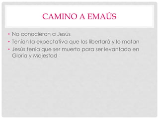 Este documento anuncia una reunión comunitaria de paz en Cerrillos el jueves 5 de noviembre a las 21:00 hrs. Discutirá el camino a Emaús y el estado interno del corazón, como la incredulidad y la frustración, pero cómo se cayó el velo y ahora hay esperanzas en Jesús para la salvación, sanidad y restauración.