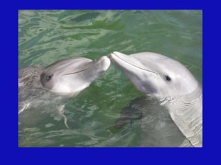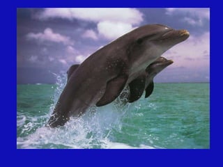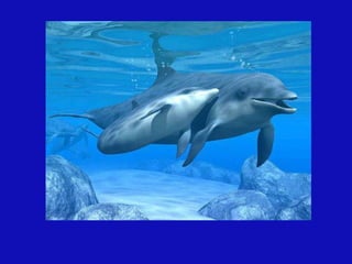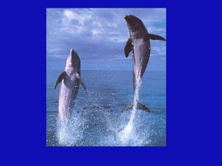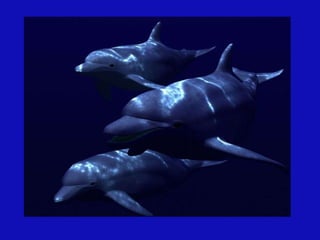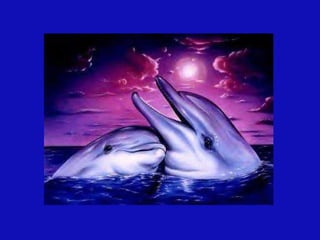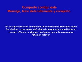 Este documento habla sobre los delfines y su importancia. Explica que los delfines emiten un aura de hasta seis kilómetros y se mantienen en un estado mental de meditación. También advierte sobre los peligros que enfrentan los delfines debido a la contaminación y caza, y destaca que su mensaje es el amor universal.
