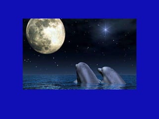 Este documento habla sobre los delfines y su importancia. Explica que los delfines emiten un aura de hasta seis kilómetros y se mantienen en un estado mental de meditación. También advierte sobre los peligros que enfrentan los delfines debido a la contaminación y caza, y destaca que su mensaje es el amor universal.