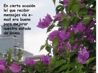 En cierta ocasión leíque recibir mensajes vía e- mail era bueno para mejorar nuestro estado de ánimo.