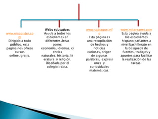 El documento habla sobre nuevas tecnologías educativas dirigidas a colegios y universidades. Estas tecnologías van mejorando y ayudando a los maestros, promueven el desarrollo tecnológico y educativo, y los maestros están capacitados para usarlas en clase. Además, estas tecnologías son apoyadas por TICs.