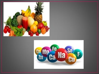 El documento habla sobre la importancia de cuidar la salud a través de una buena nutrición. Explica que comer comida chatarra con frecuencia puede causar obesidad, diabetes y otros problemas de salud a largo plazo. También define los macronutrientes y micronutrientes necesarios para el cuerpo, incluyendo carbohidratos, proteínas, grasas, vitaminas y minerales. Resalta la importancia de consumir granos integrales, frutas y verduras como parte de una dieta balanceada.