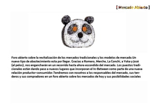 El documento aborda la revitalización creativa mediante la solución de compartir espacios y generar sinergias para mitigar problemas de tiempo, dinero y riesgo. Propone el co-vending como estrategia clave para revalorizar recursos económicos y humanos, así como la importancia de la comunidad en la adquisición de productos frescos y de calidad. Destaca las fortalezas del mercado local y su función social como un espacio de encuentro y consejo.