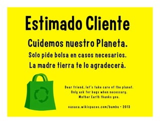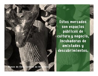 El documento describe los mercados de Oaxaca, México. Señala que los mercados de Oaxaca son algunos de los mejores del mundo y atienden tanto a locales como visitantes. El autor ha vivido en Oaxaca durante 10 años y ha visitado la región durante 20 años, por lo que la presentación incluye fotos favoritas y capturas de pantalla de redes sociales. El objetivo es compartir información sobre los mercados y fomentar la interacción entre los miembros del grupo.