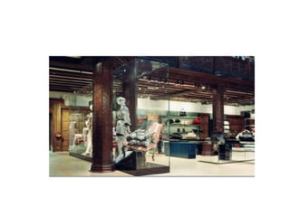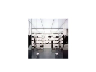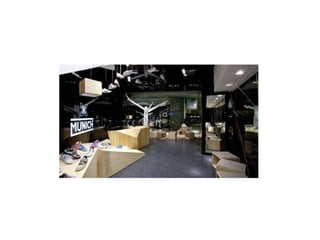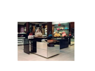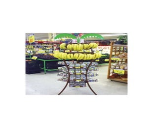 El documento habla sobre anaqueles, merchandising visual, y vitrinas para uso en autoservicio.